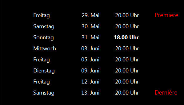Jeweils ab 18:30 Uhr bzw. am Sonntag ab 16:30 Uhr